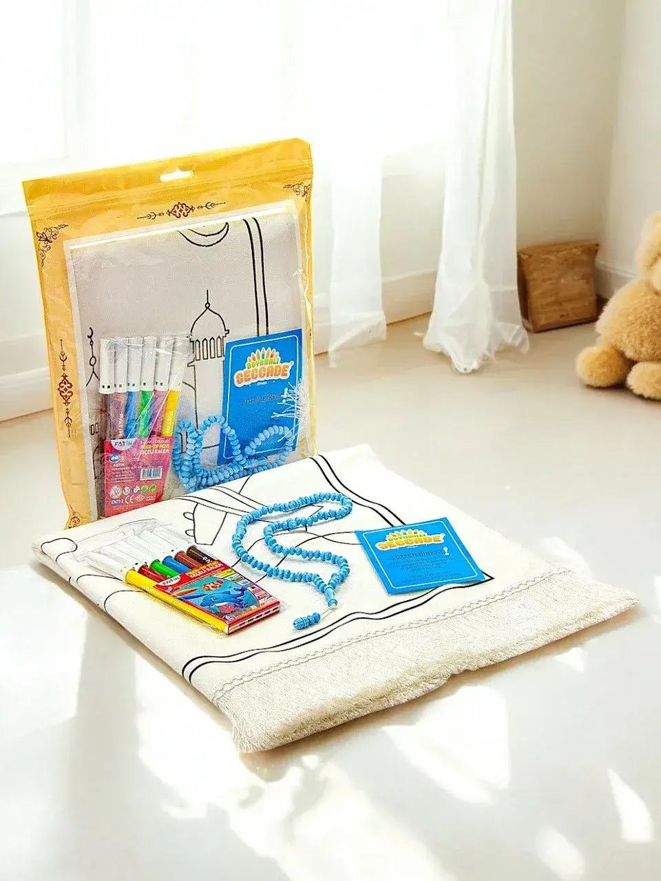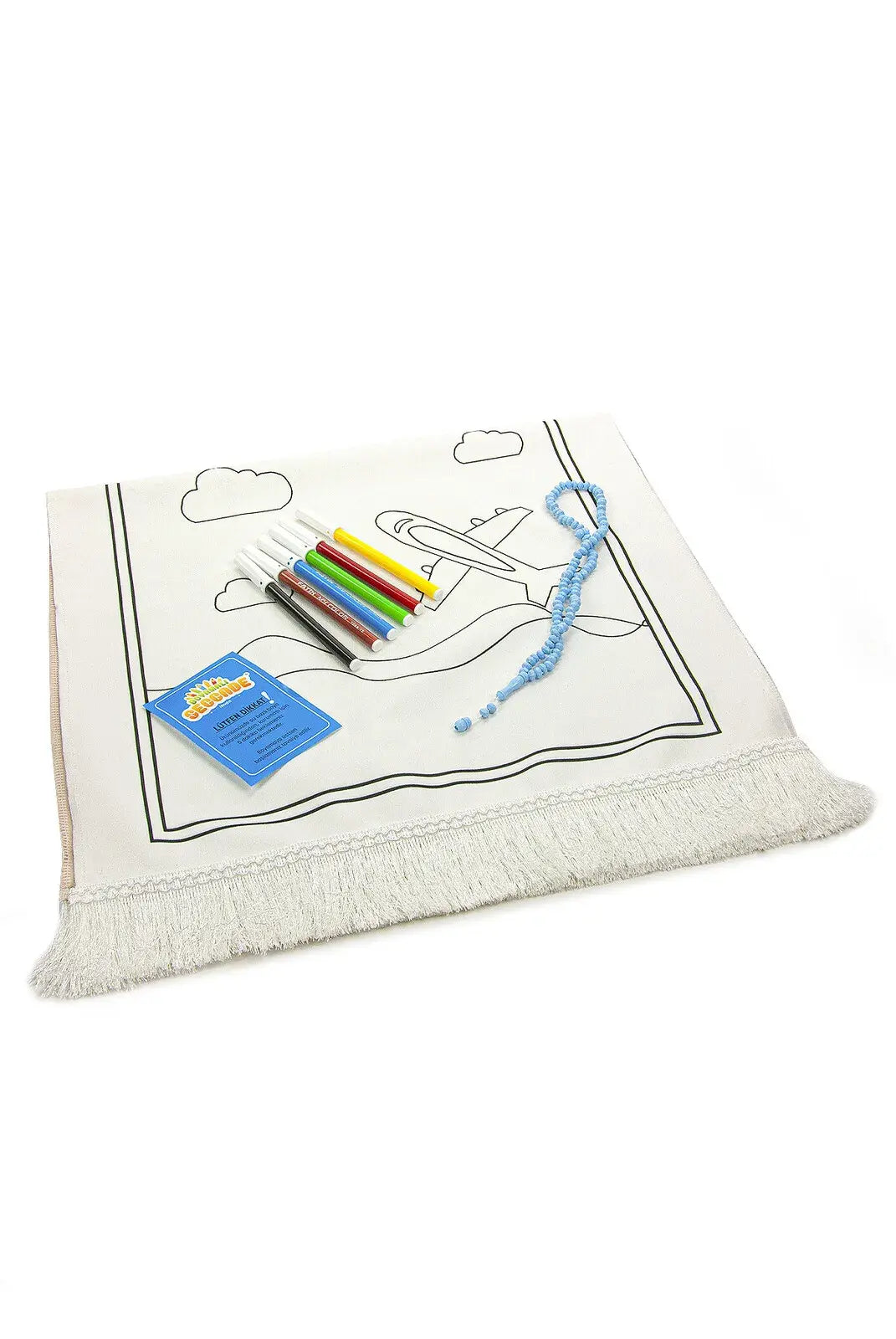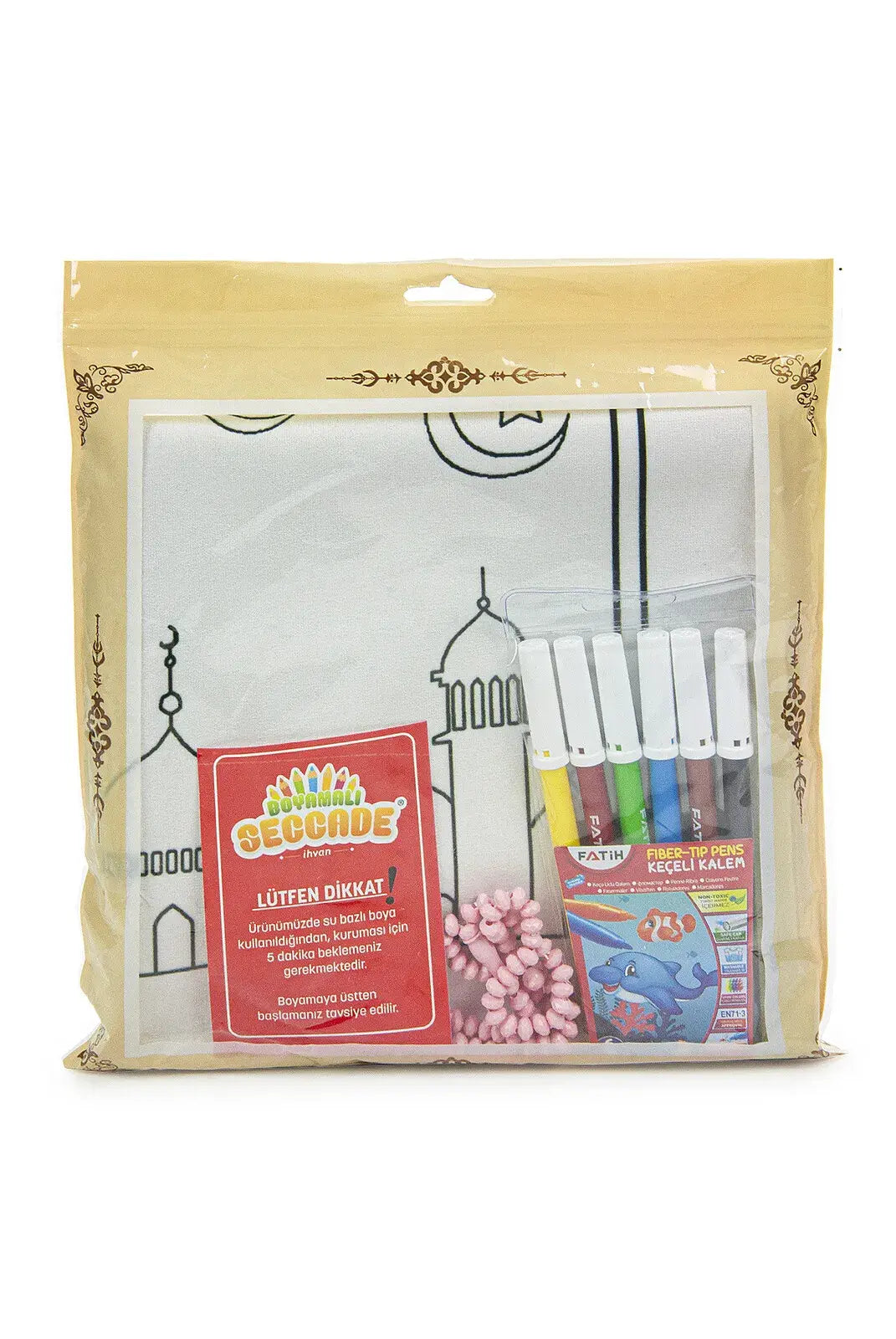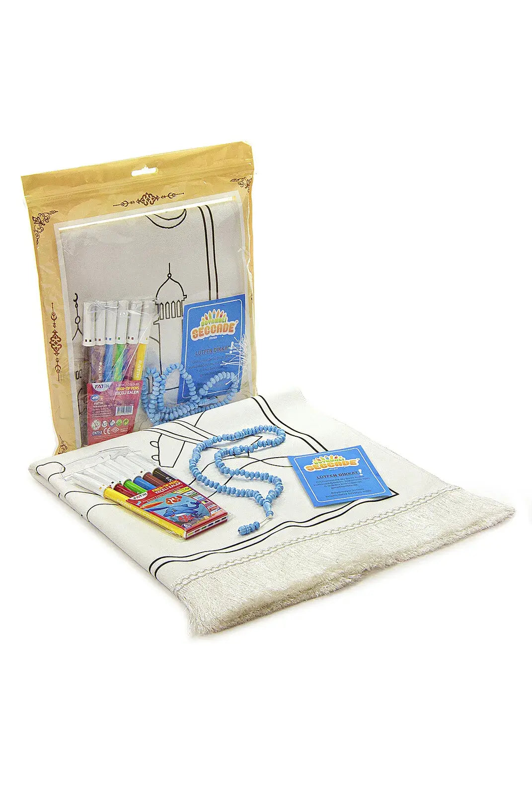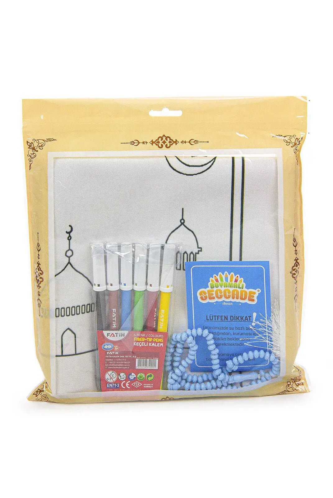 Boyamalı Yıkanabilir Eğitici Çocuk Seccadesi ve Tesbih Seti